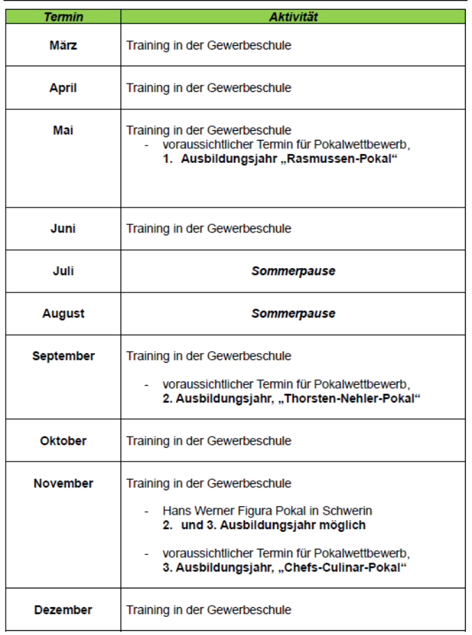 Jugendarbeit Verein Lübecker Köche
