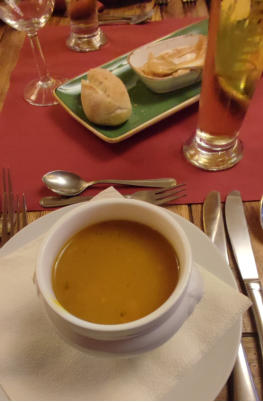Vorweg gibt es eine Spargelsuppe, die Kosten dafür werden  für Mitglieder aus der  Vereinskasse übernommen.